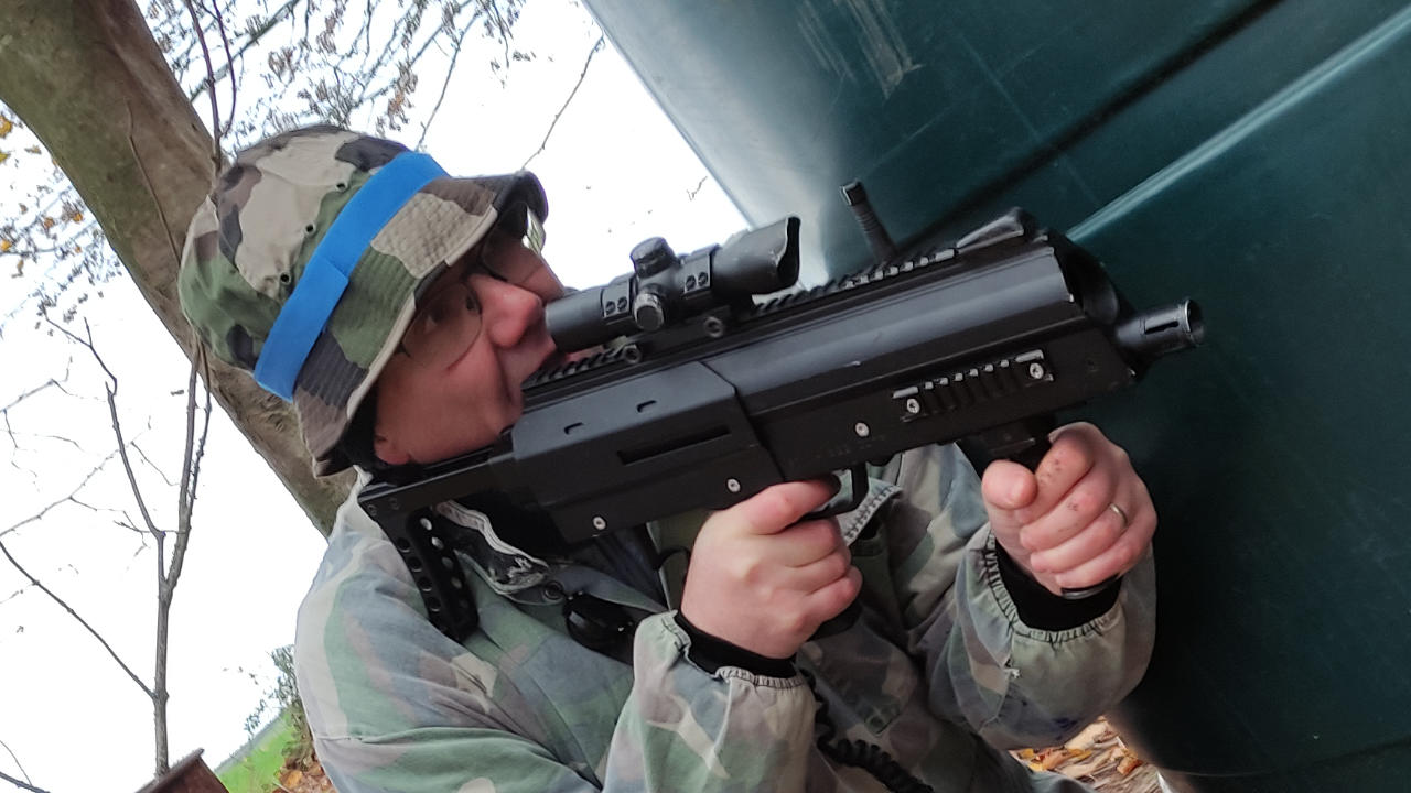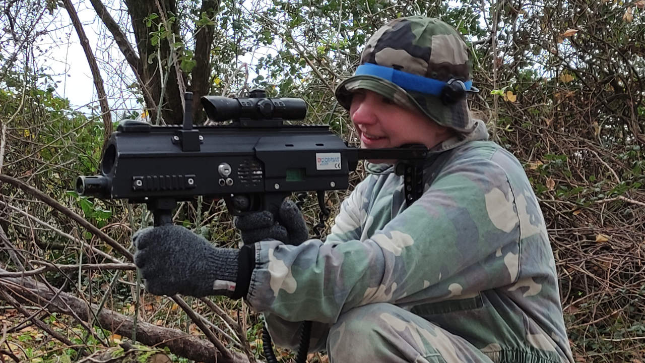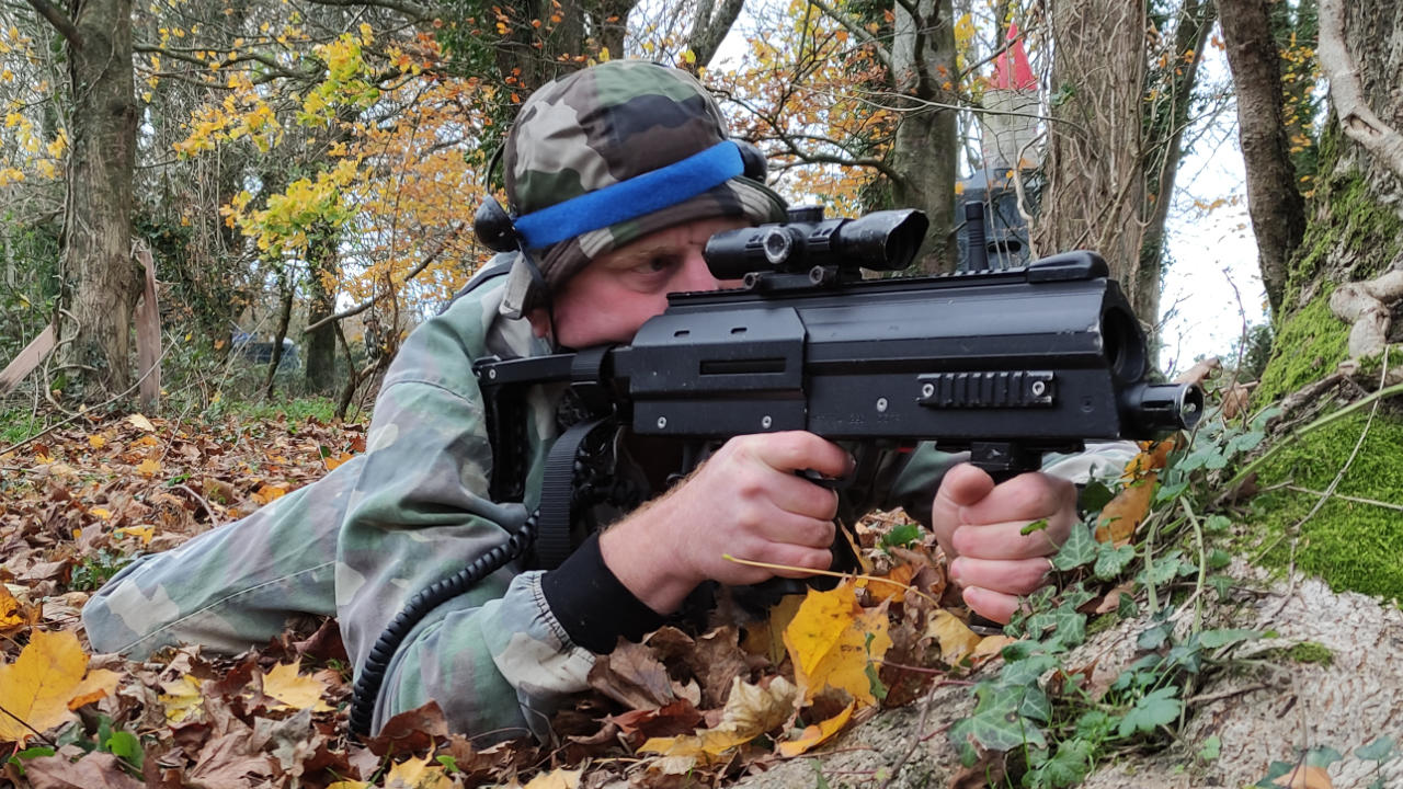 The really cool thing about our kit is that we can customise our laser tag guns with pre-loaded weapon emulations, from bolt action to heavy machine guns!